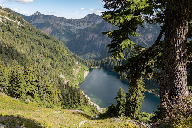 Joe Lake (above) and Alaska Lake were pretty and appealing, but not particularly accessible. It's a long way between campsites on this stretch, unless you carry water for a dry camp.